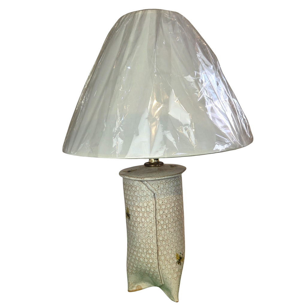 Bee Honeycomb Pattern Stoneware White Lamp