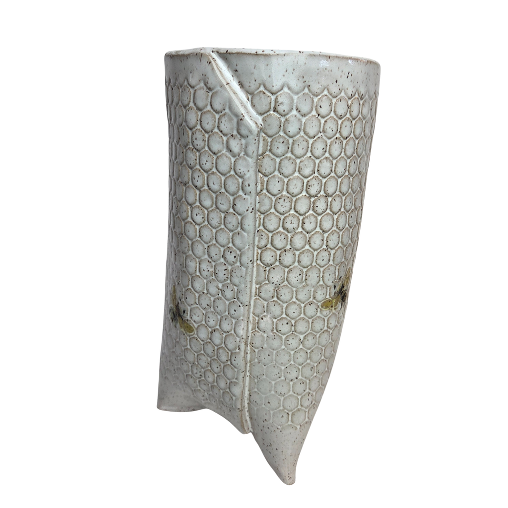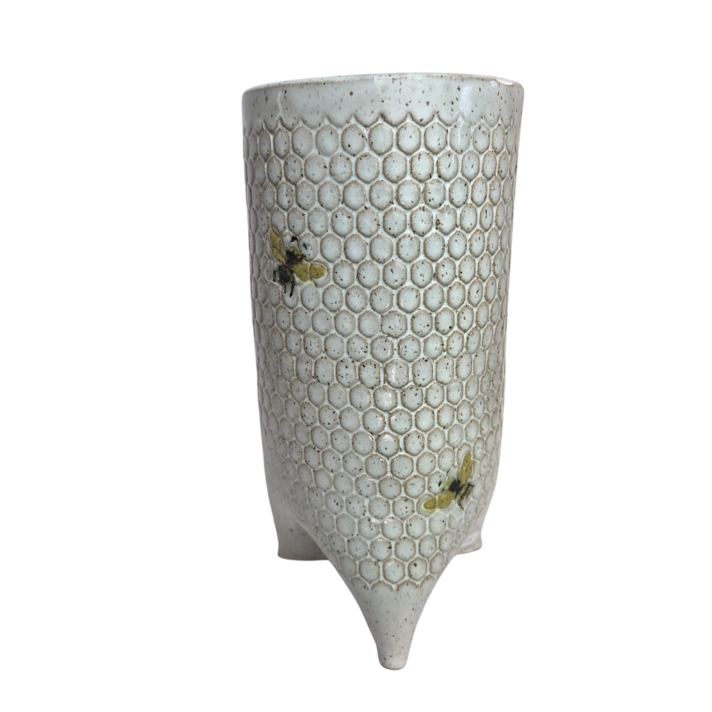 Bee Honeycomb Pattern Large Tri-foot Stoneware White Vase