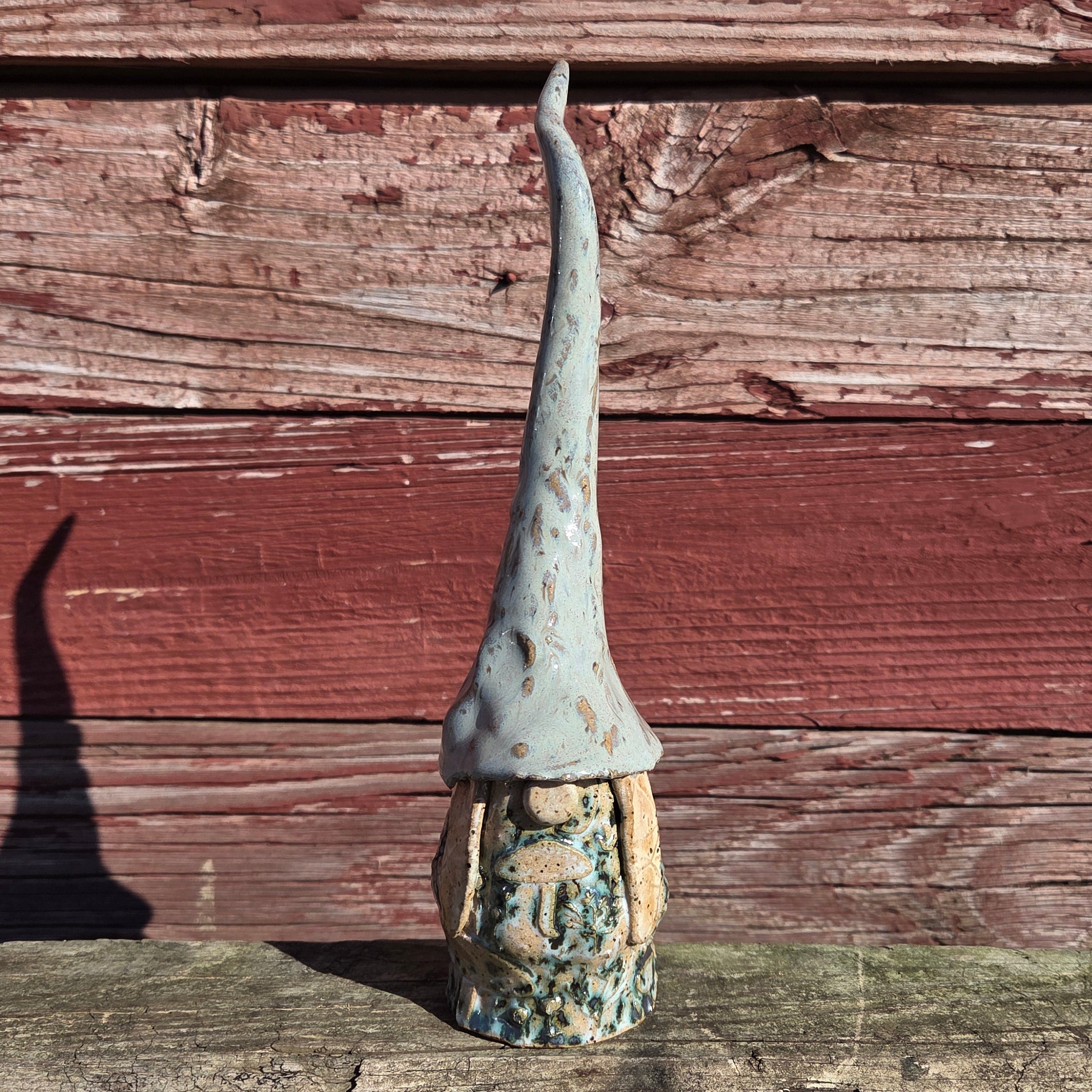 Lovingly handmade and glazed in Oberlin, Ohio, each gnome is crafted from sturdy stoneware clay and stands approximately 8–10 inches tall, depending on the whimsy of their hat’s curl! No two are ever alike—every gnome has their own quirky charm and personality.