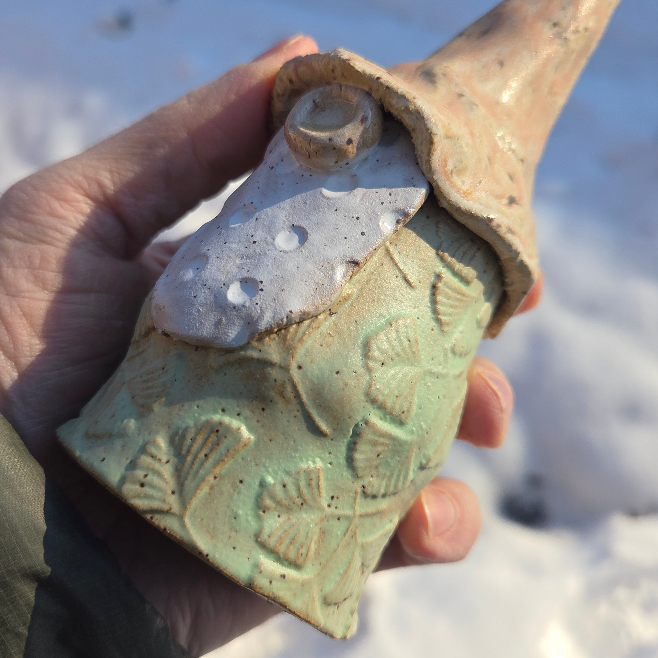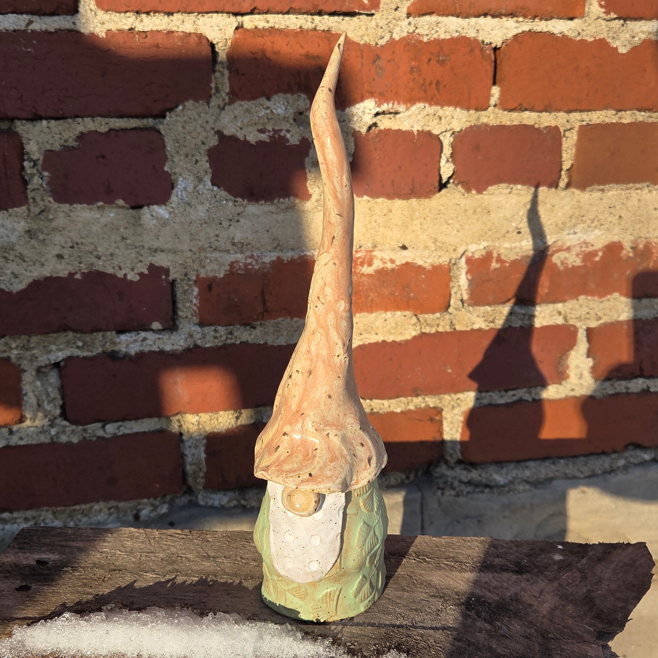 Lovingly handmade and glazed in Oberlin, Ohio, each gnome is crafted from sturdy stoneware clay and stands approximately 8–10 inches tall, depending on the whimsy of their hat’s curl! No two are ever alike—every gnome has their own quirky charm and personality.