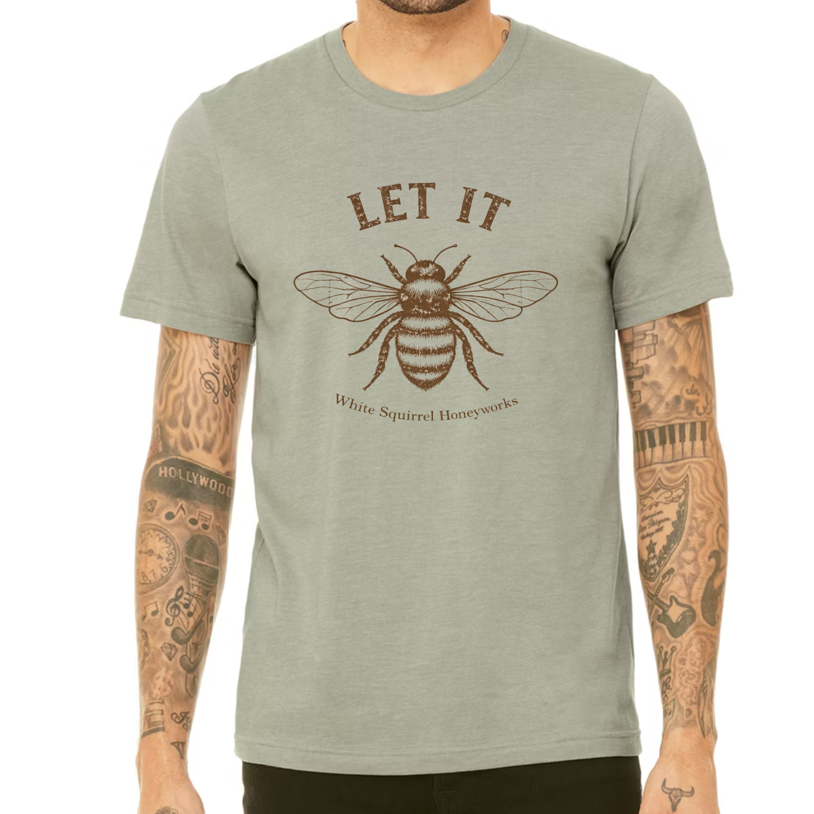 This soft, comfortable “Let It Bee” t-shirt features the playful phrase printed alongside White Squirrel Honeyworks, making it a must-have for bee lovers, honey fans, and anyone with a good sense of humor.