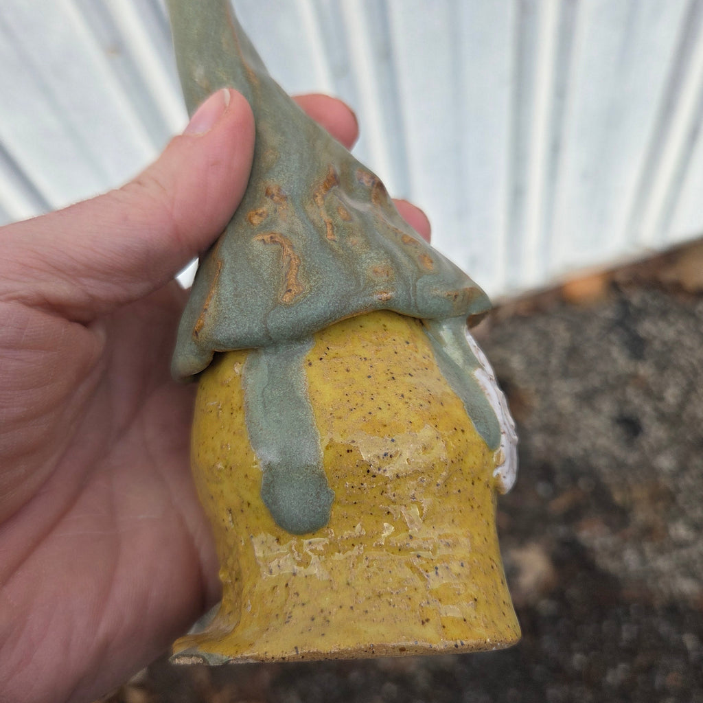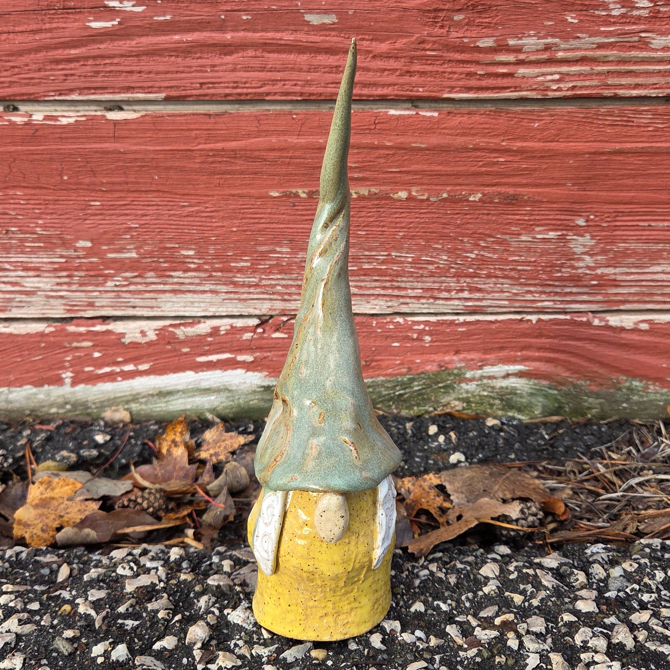 Lovingly handmade and glazed in Oberlin, Ohio, each gnome is crafted from sturdy stoneware clay and stands approximately 8–10 inches tall, depending on the whimsy of their hat’s curl! No two are ever alike—every gnome has their own quirky charm and personality.