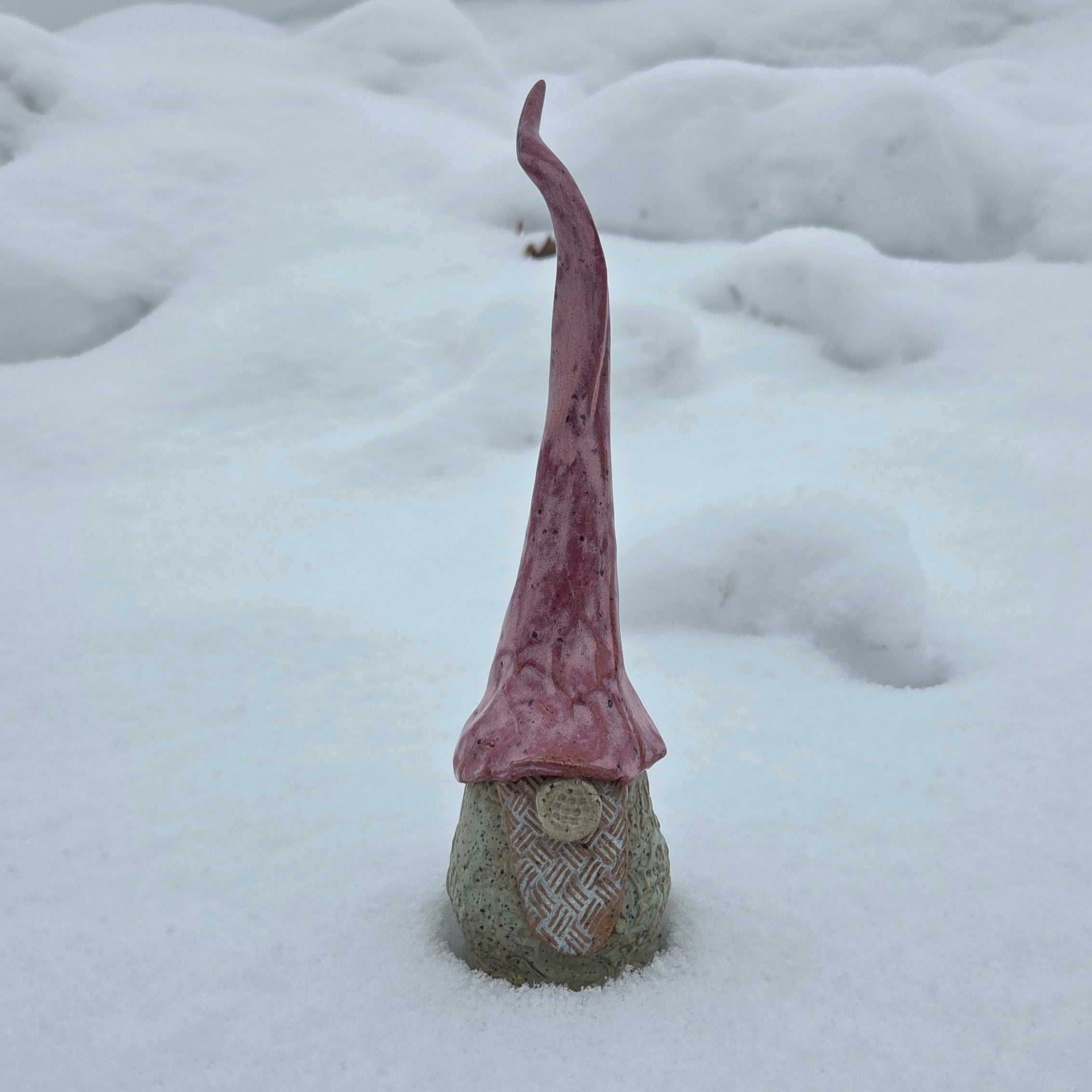 Lovingly handmade and glazed in Oberlin, Ohio, each gnome is crafted from sturdy stoneware clay and stands approximately 8–10 inches tall, depending on the whimsy of their hat’s curl! No two are ever alike—every gnome has their own quirky charm and personality.
