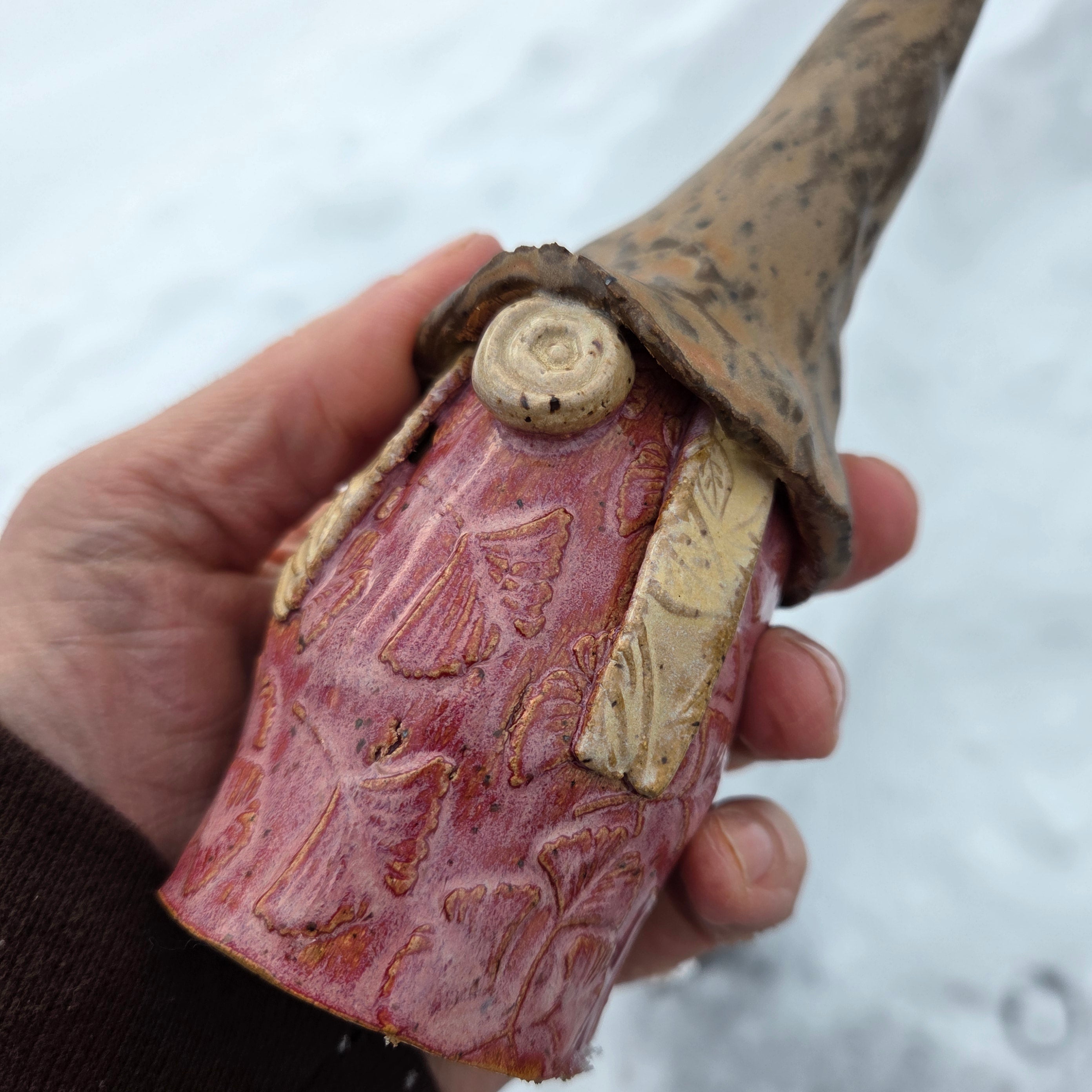 Lovingly handmade and glazed in Oberlin, Ohio, each gnome is crafted from sturdy stoneware clay and stands approximately 8–10 inches tall, depending on the whimsy of their hat’s curl! No two are ever alike—every gnome has their own quirky charm and personality.
