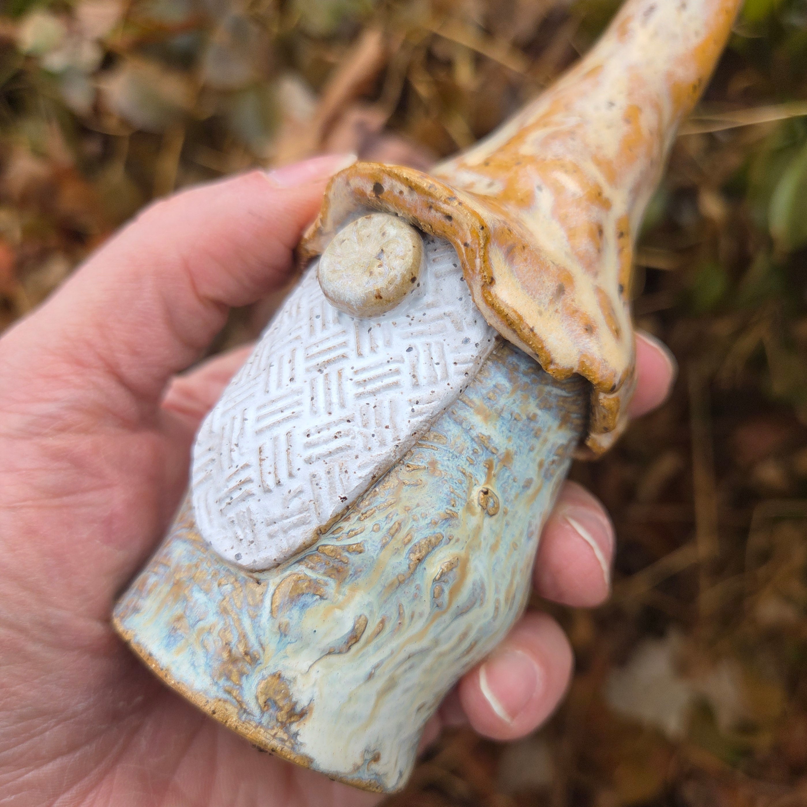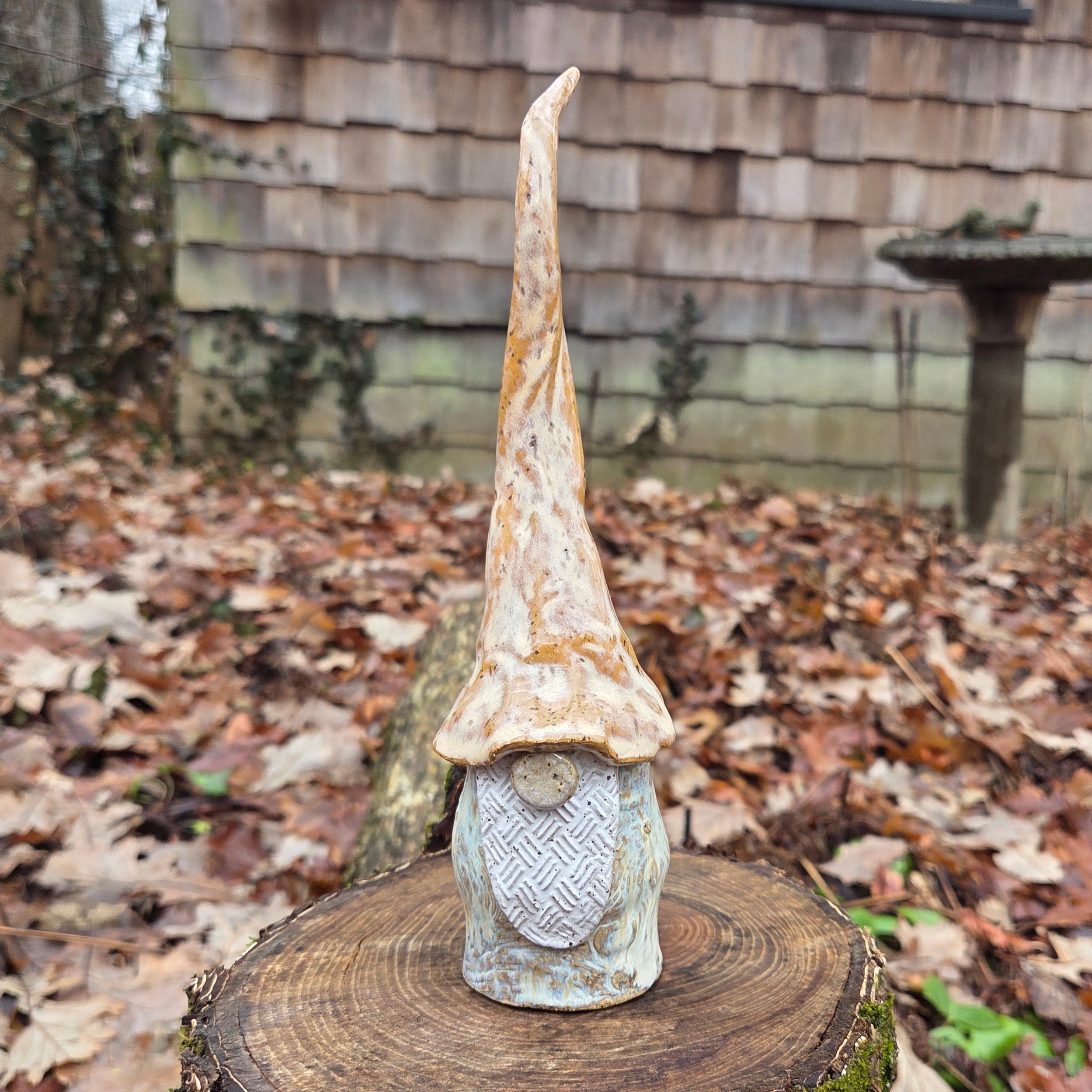 Lovingly handmade and glazed in Oberlin, Ohio, each gnome is crafted from sturdy stoneware clay and stands approximately 8–10 inches tall, depending on the whimsy of their hat’s curl! No two are ever alike—every gnome has their own quirky charm and personality.