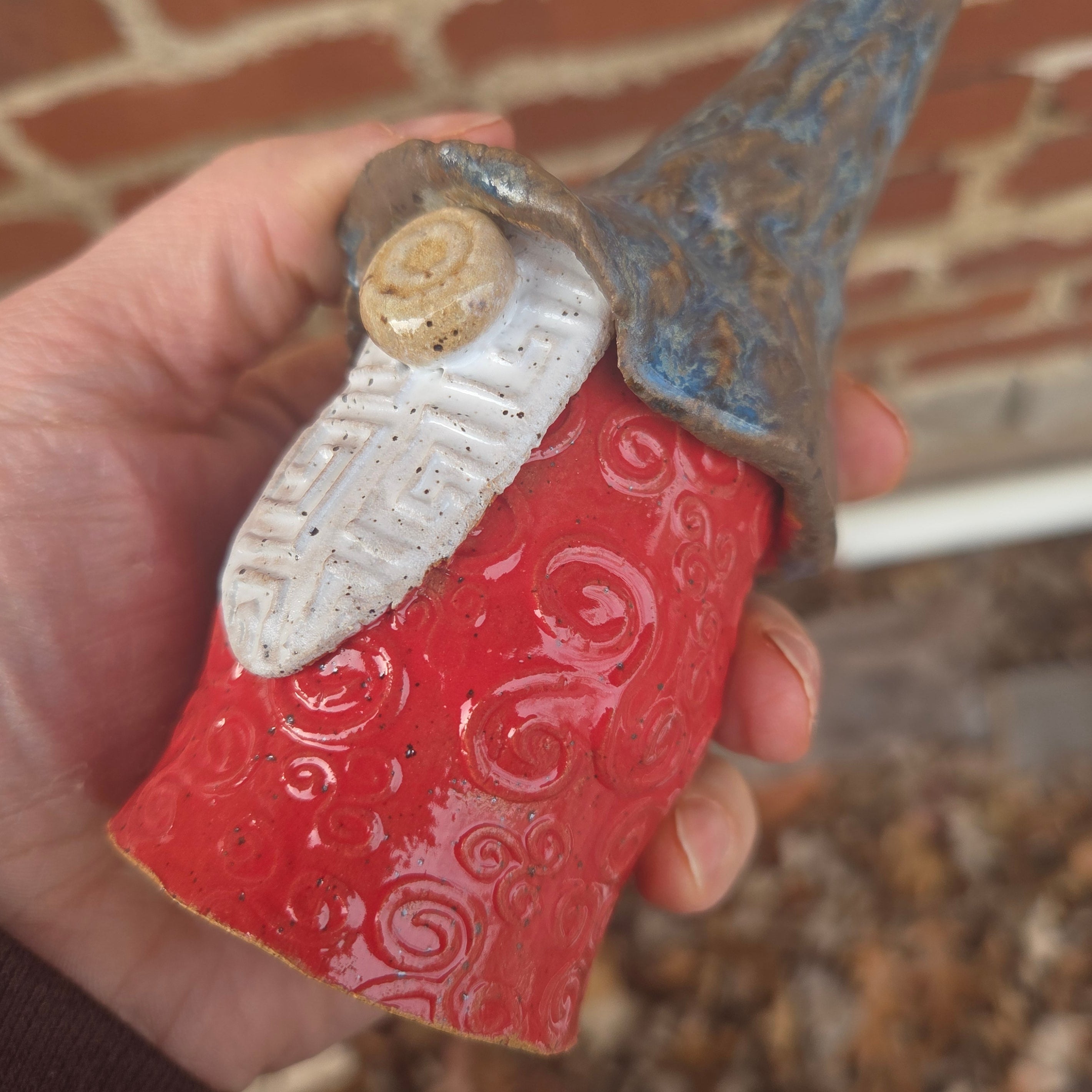 Lovingly handmade and glazed in Oberlin, Ohio, each gnome is crafted from sturdy stoneware clay and stands approximately 8–10 inches tall, depending on the whimsy of their hat’s curl! No two are ever alike—every gnome has their own quirky charm and personality.