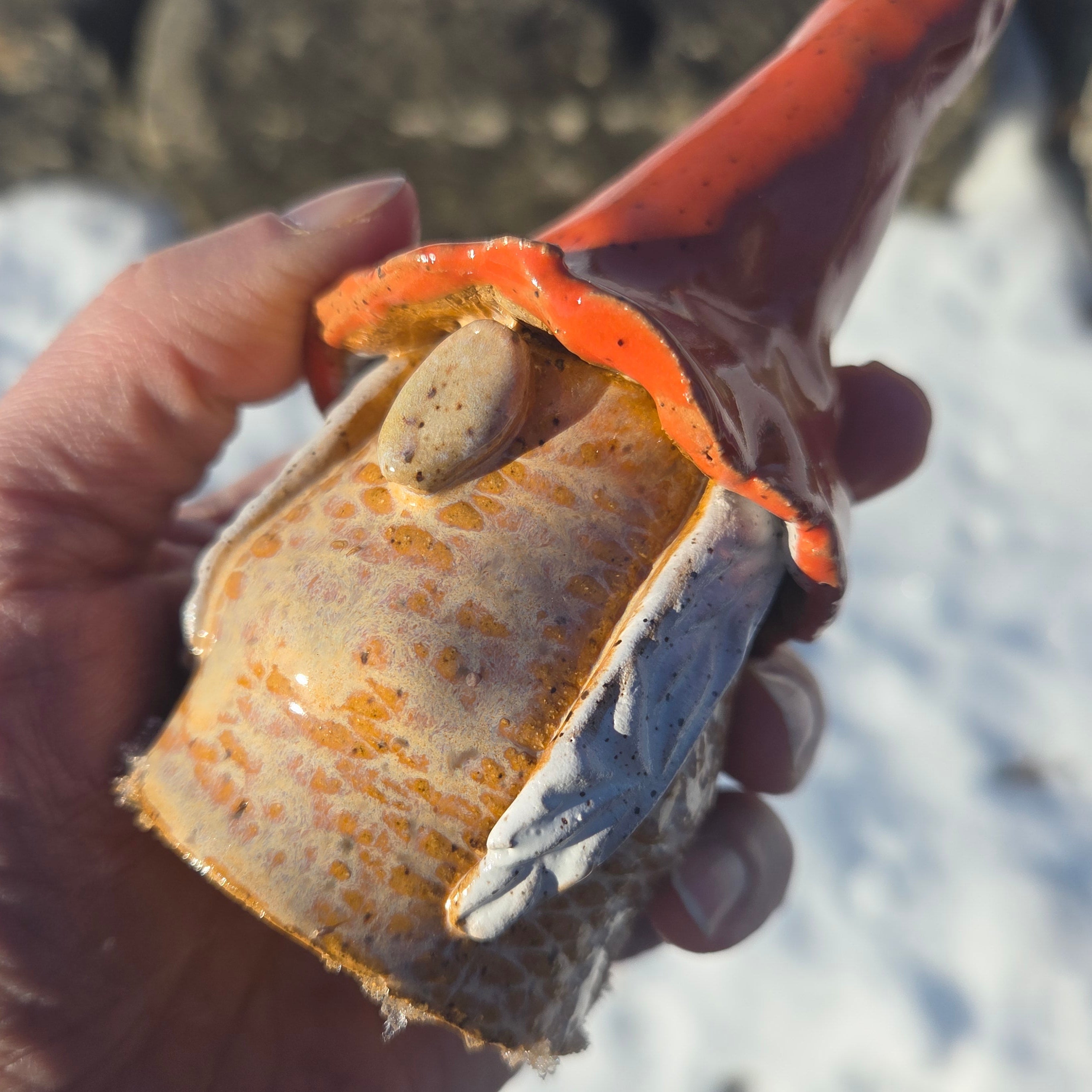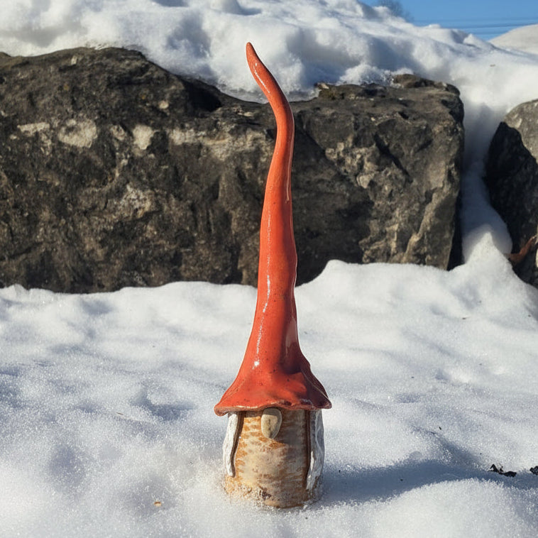 Lovingly handmade and glazed in Oberlin, Ohio, each gnome is crafted from sturdy stoneware clay and stands approximately 8–10 inches tall, depending on the whimsy of their hat’s curl! No two are ever alike—every gnome has their own quirky charm and personality.