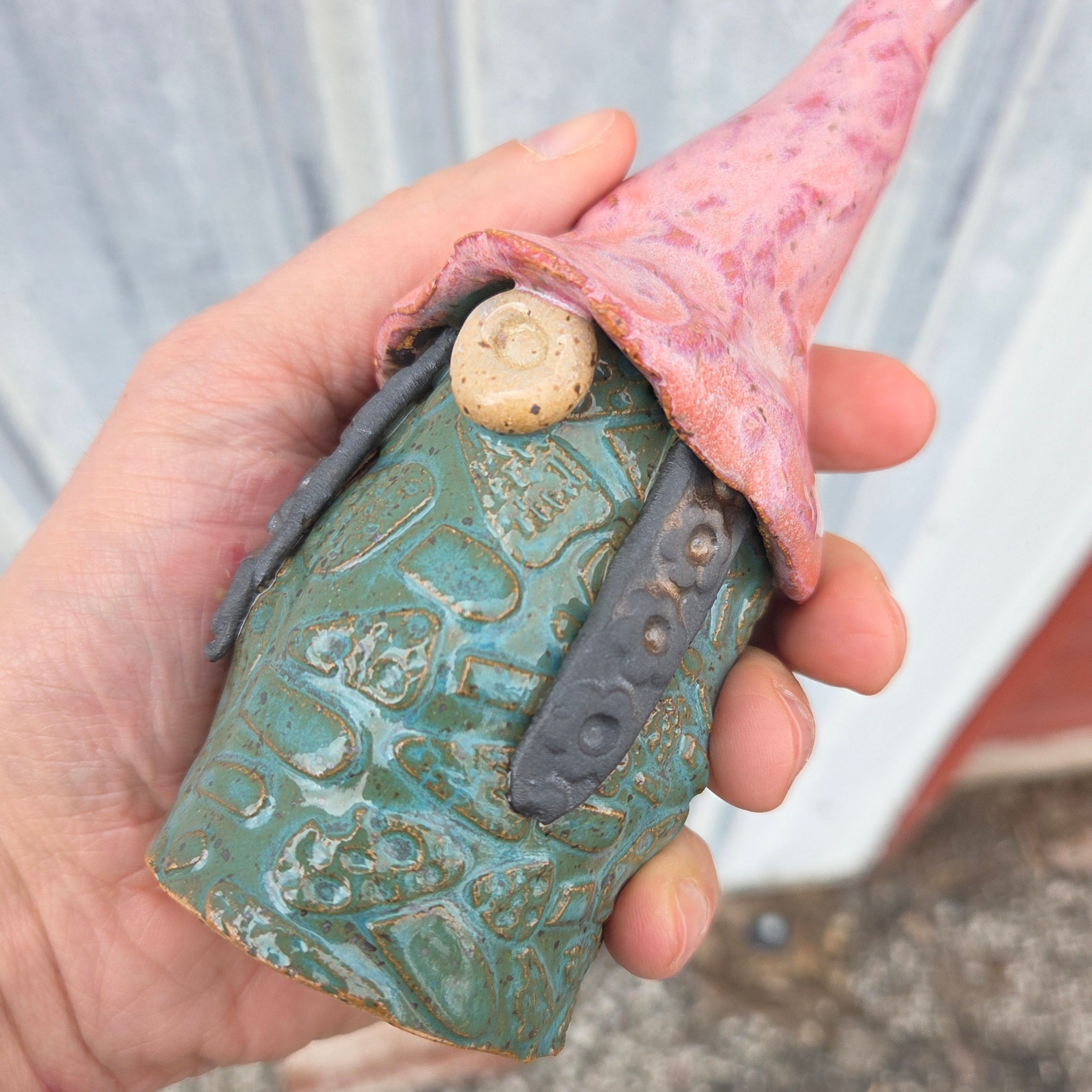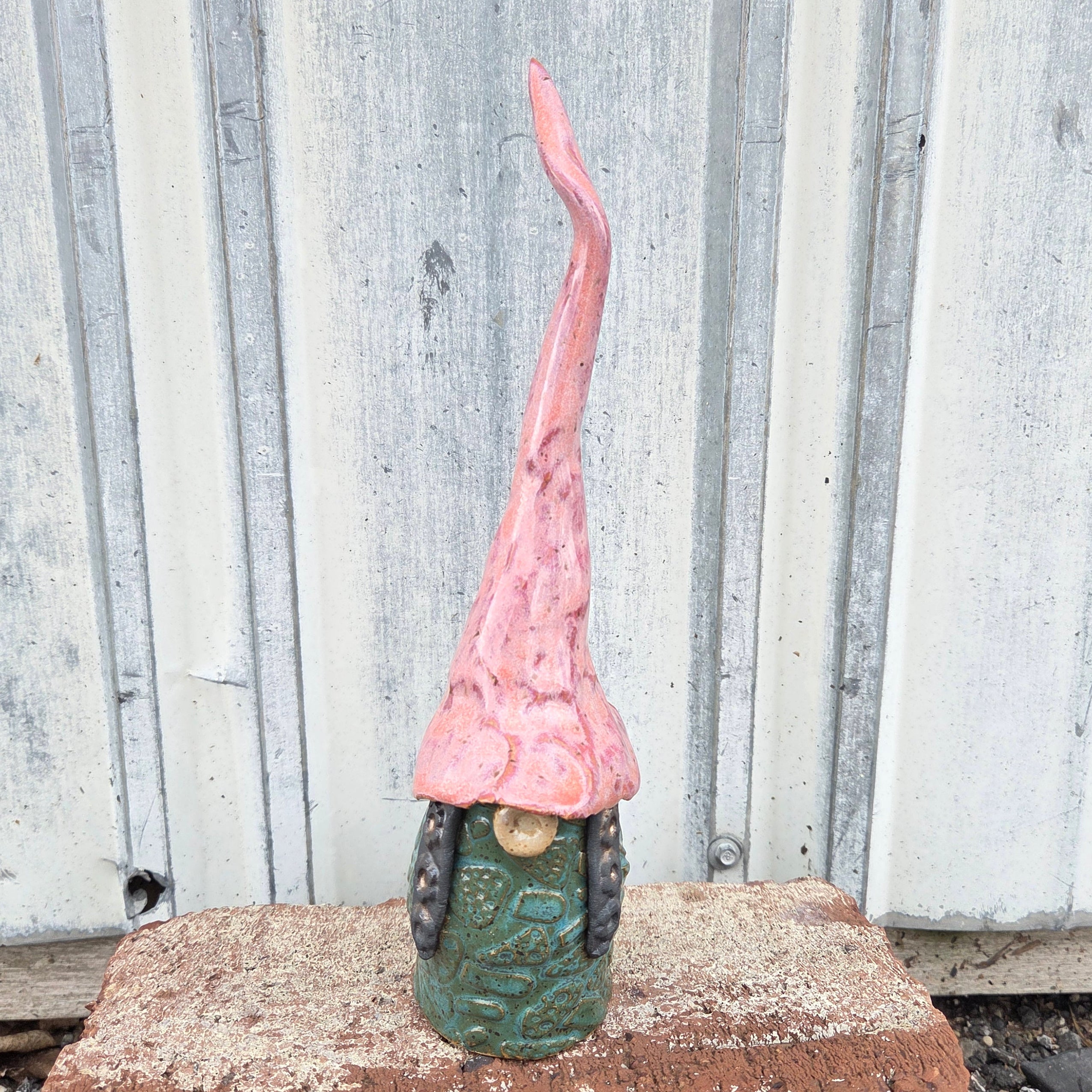 Lovingly handmade and glazed in Oberlin, Ohio, each gnome is crafted from sturdy stoneware clay and stands approximately 8–10 inches tall, depending on the whimsy of their hat’s curl! No two are ever alike—every gnome has their own quirky charm and personality.