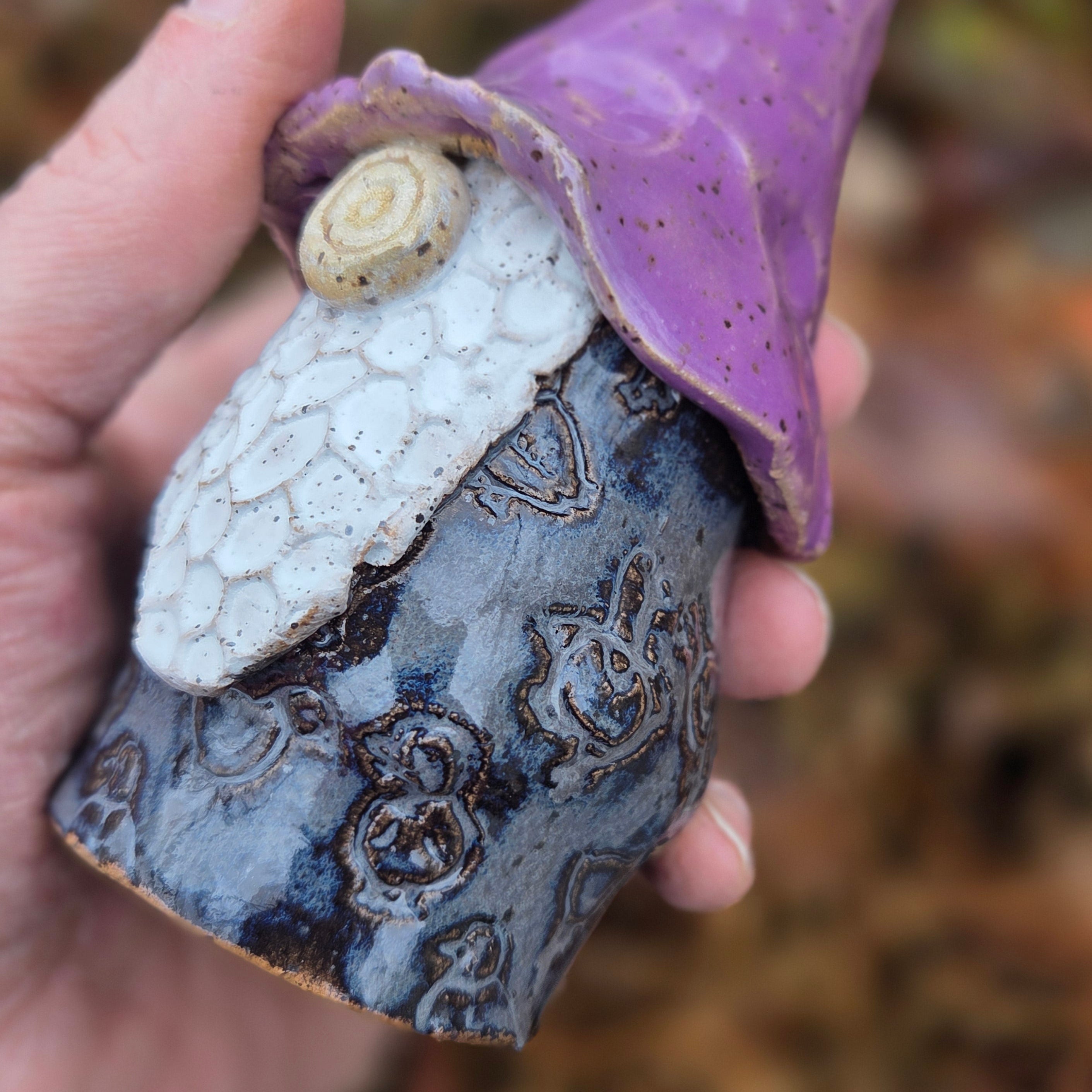 Lovingly handmade and glazed in Oberlin, Ohio, each gnome is crafted from sturdy stoneware clay and stands approximately 8–10 inches tall, depending on the whimsy of their hat’s curl! No two are ever alike—every gnome has their own quirky charm and personality.