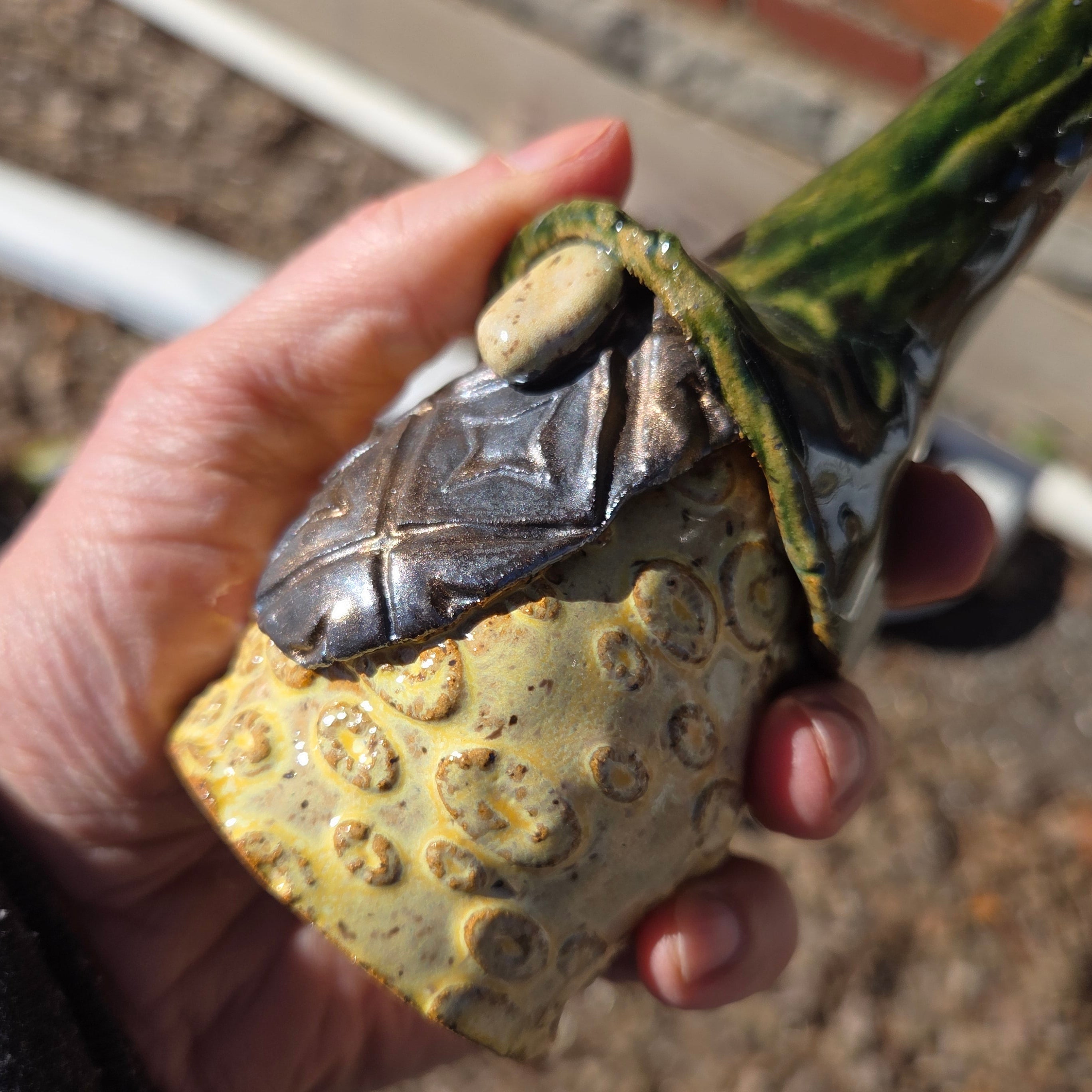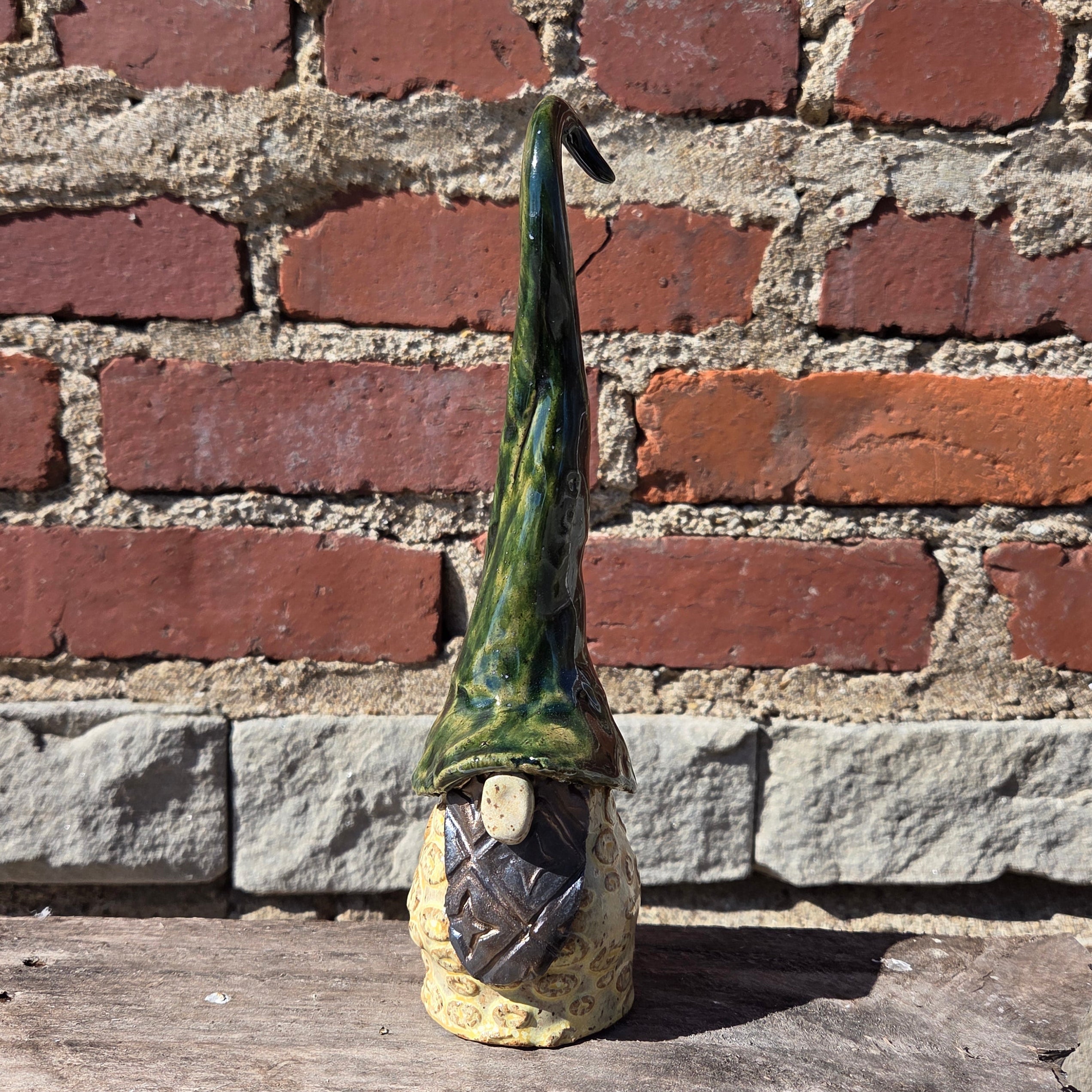 Lovingly handmade and glazed in Oberlin, Ohio, each gnome is crafted from sturdy stoneware clay and stands approximately 8–10 inches tall, depending on the whimsy of their hat’s curl! No two are ever alike—every gnome has their own quirky charm and personality.