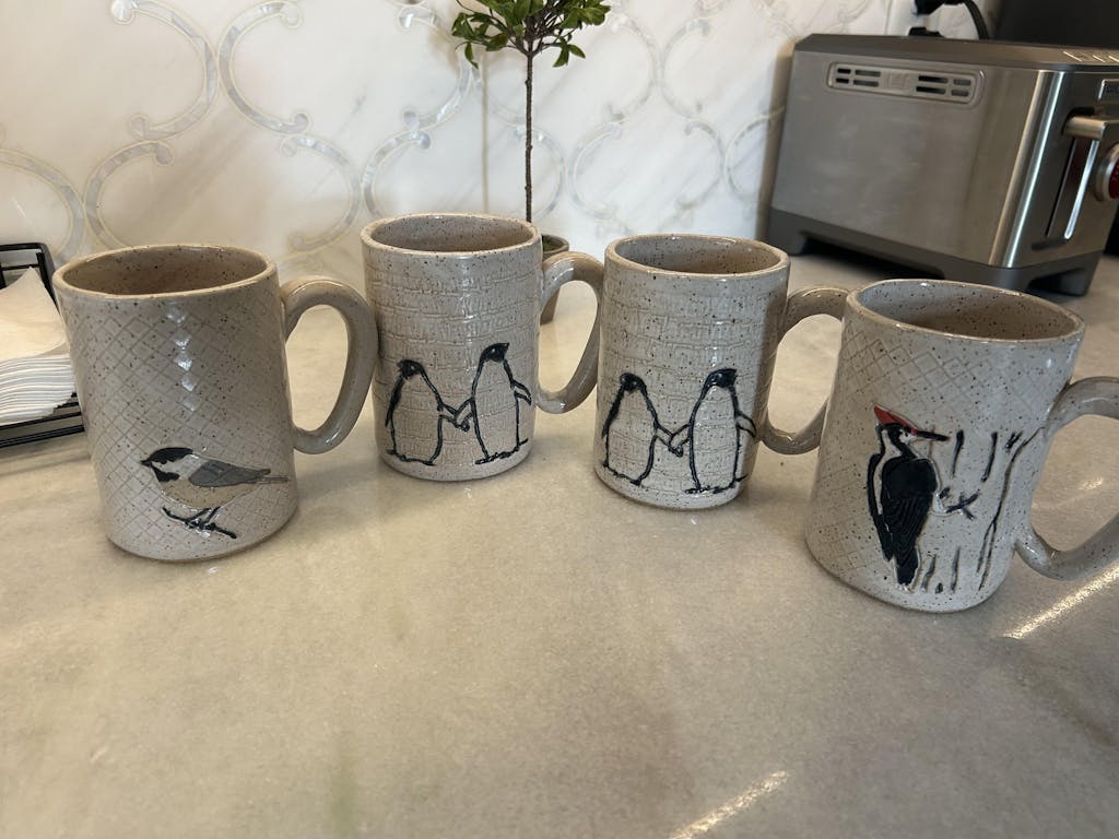 This beautiful 14 oz. stoneware mug features a detailed pileated woodpecker design and is hand-built and hand-glazed with care in Oberlin, Ohio. Measuring approximately 3 1/4 inches wide by 4 3/4 inches high, it’s just right for your favorite coffee, tea, or cocoa. Food, dishwasher, and microwave safe for everyday use.
