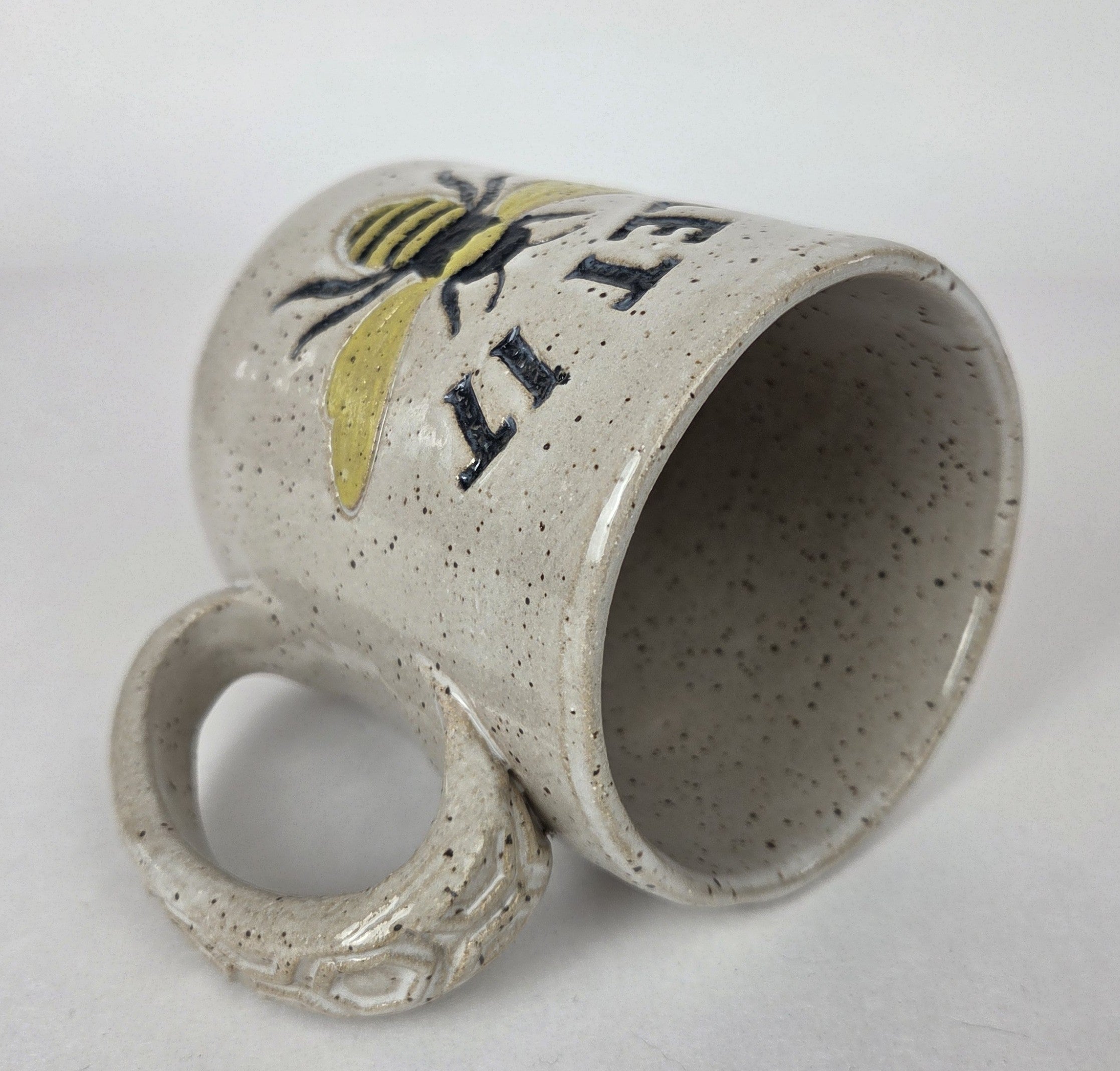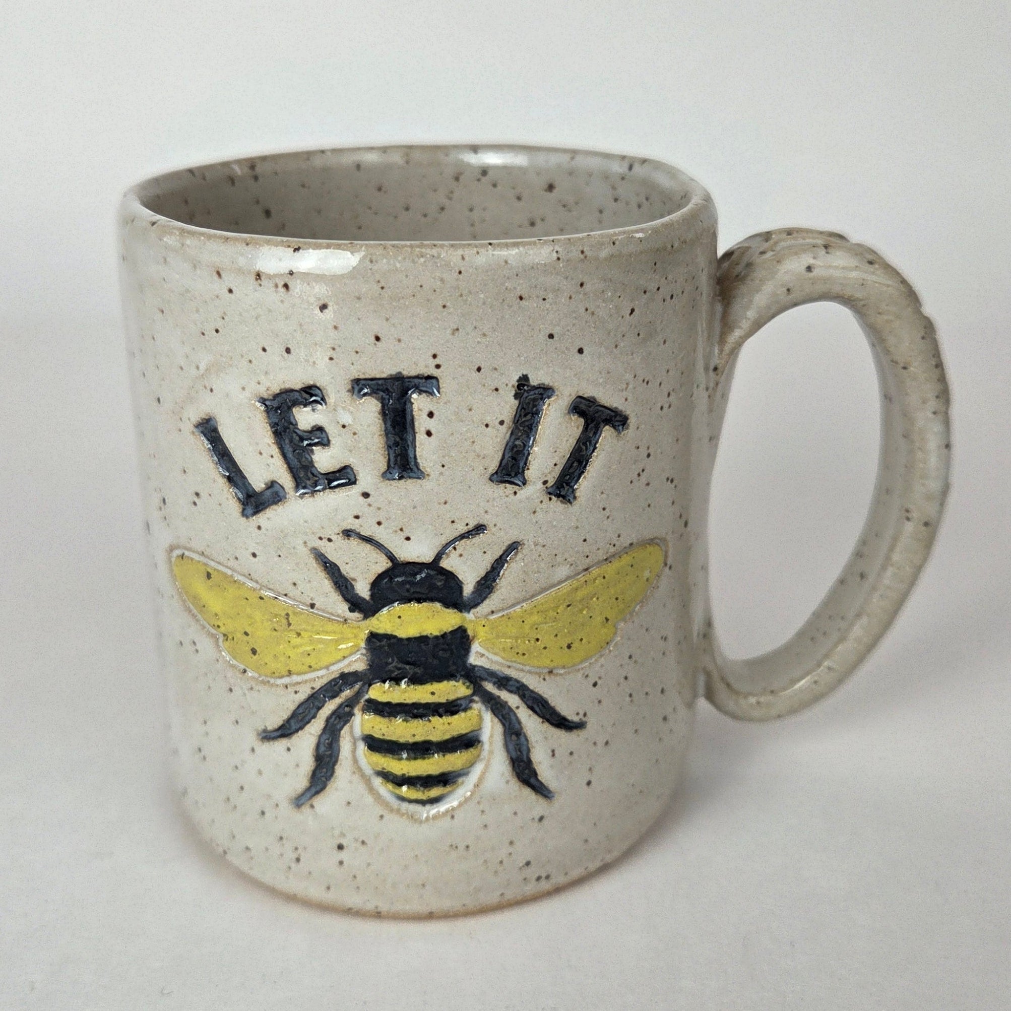 This beautiful 12 oz. stoneware mug features our playful “Let It Bee” pattern and is hand-built and hand-glazed with care in Ohio, USA. Measuring approximately 4" long by 3¼" wide and 4" high, it’s the perfect size to bring a little sunshine to your morning coffee or tea. Food, dishwasher, and microwave safe, it’s made for everyday enjoyment.